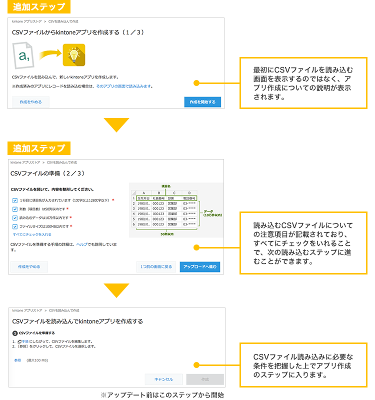 - CSVからアプリ作成時に「概要説明」と「準備」ステップの追加