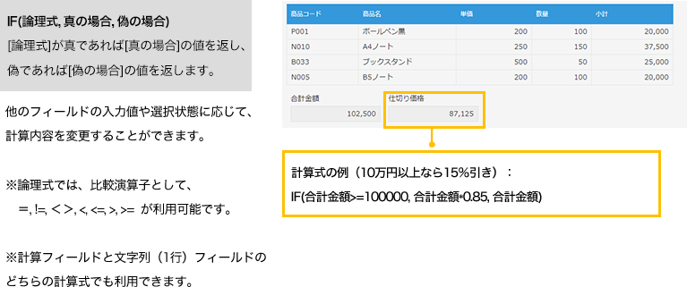 計算式でIF関数が利用できるようになりました。