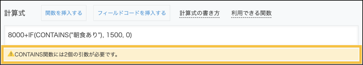 間違った計算式を入力した際、計算式の入力箇所の下部にメッセージが表示されます。