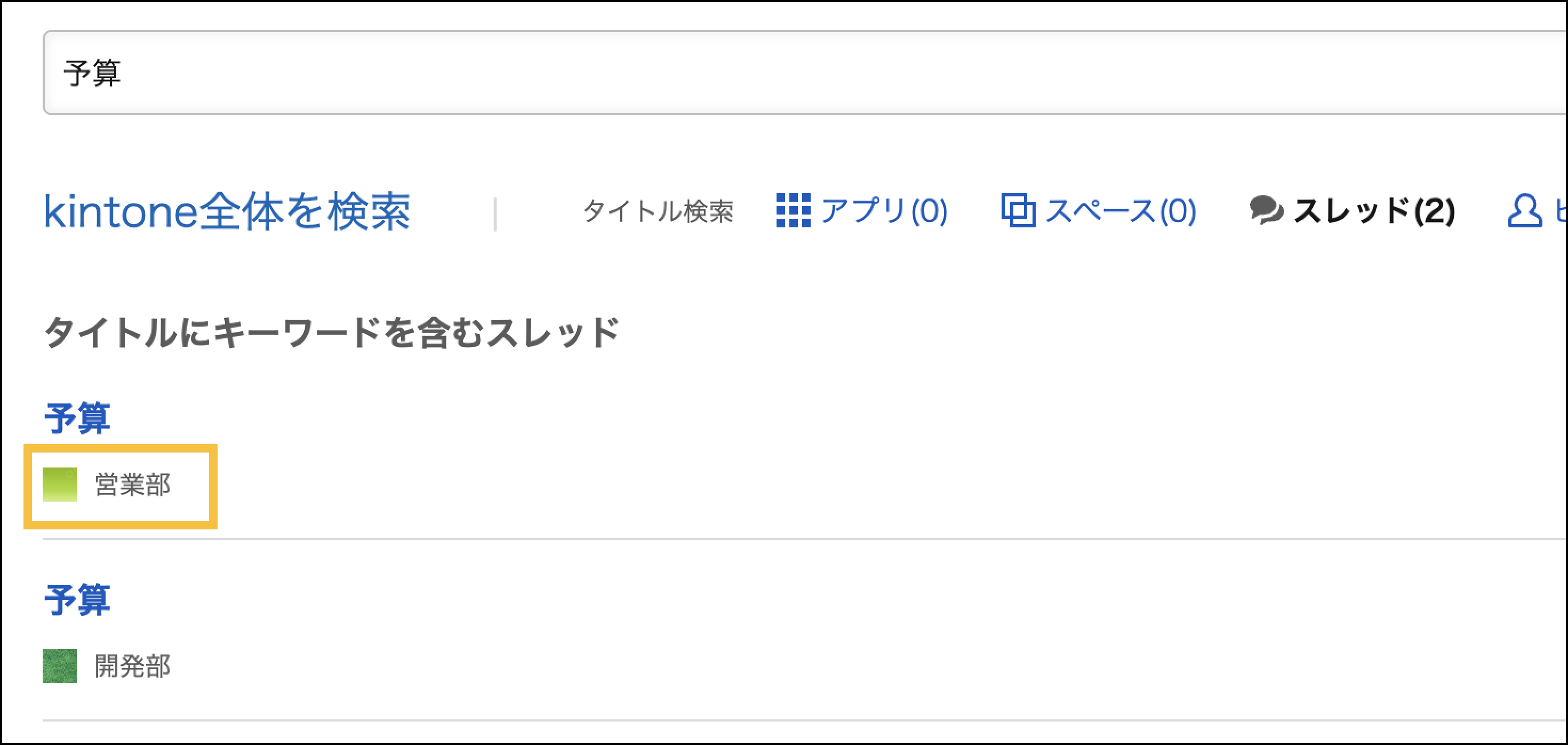 アプリ名やスレッド名だけでなく、アプリの説明や、スレッドが所属するスペース名も確認できます。