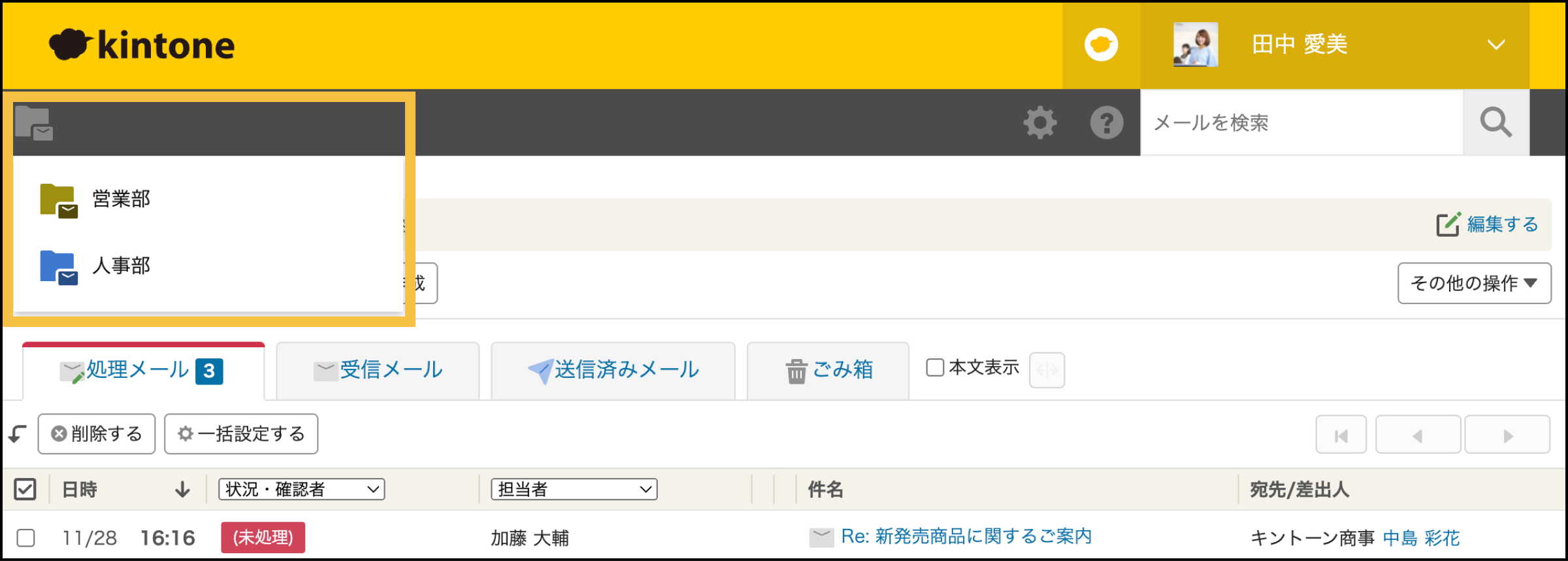 「メール共有オプション」で複数のメールアプリケーションが利用できるようになりました。これまではアプリケーションは1つしか利用できなかったため、1つのチームや業務においての利用が中心でした。今後は、代表メールアドレスごとにアプリケーションを分ける設定が可能なため、例えば人事部と営業部でそれぞれアプリケーションを分けて、複数の業務での利用を行うことができるようになります。