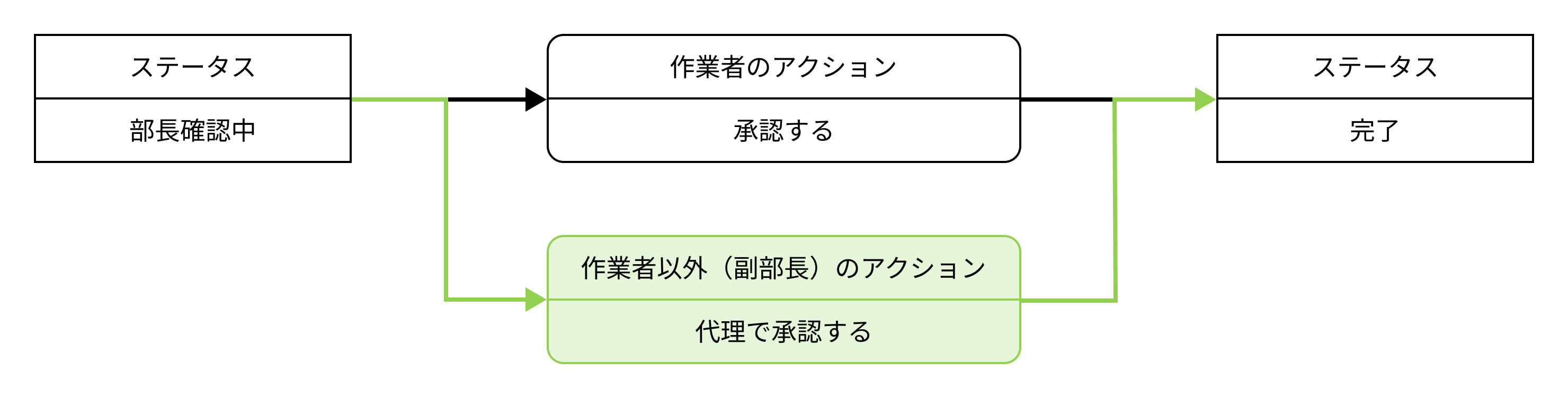 ■活用例1:部長のユーザーの代わりに、副部長のユーザーがステータスを変更できるように