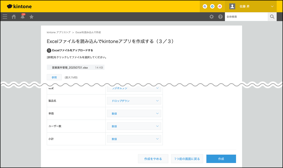kintone開発チームでは、今後の製品改善スピードの向上を目指し、リリース当初から利用し続けてきたフロントエンドの技術基盤の刷新を、各種画面で順次進めています。今回、新たにアプリストア内の「Excelを読み込んで作成」画面のフロントエンド基盤が刷新され、それにあわせてレイアウト・パーツも一部変更されています。