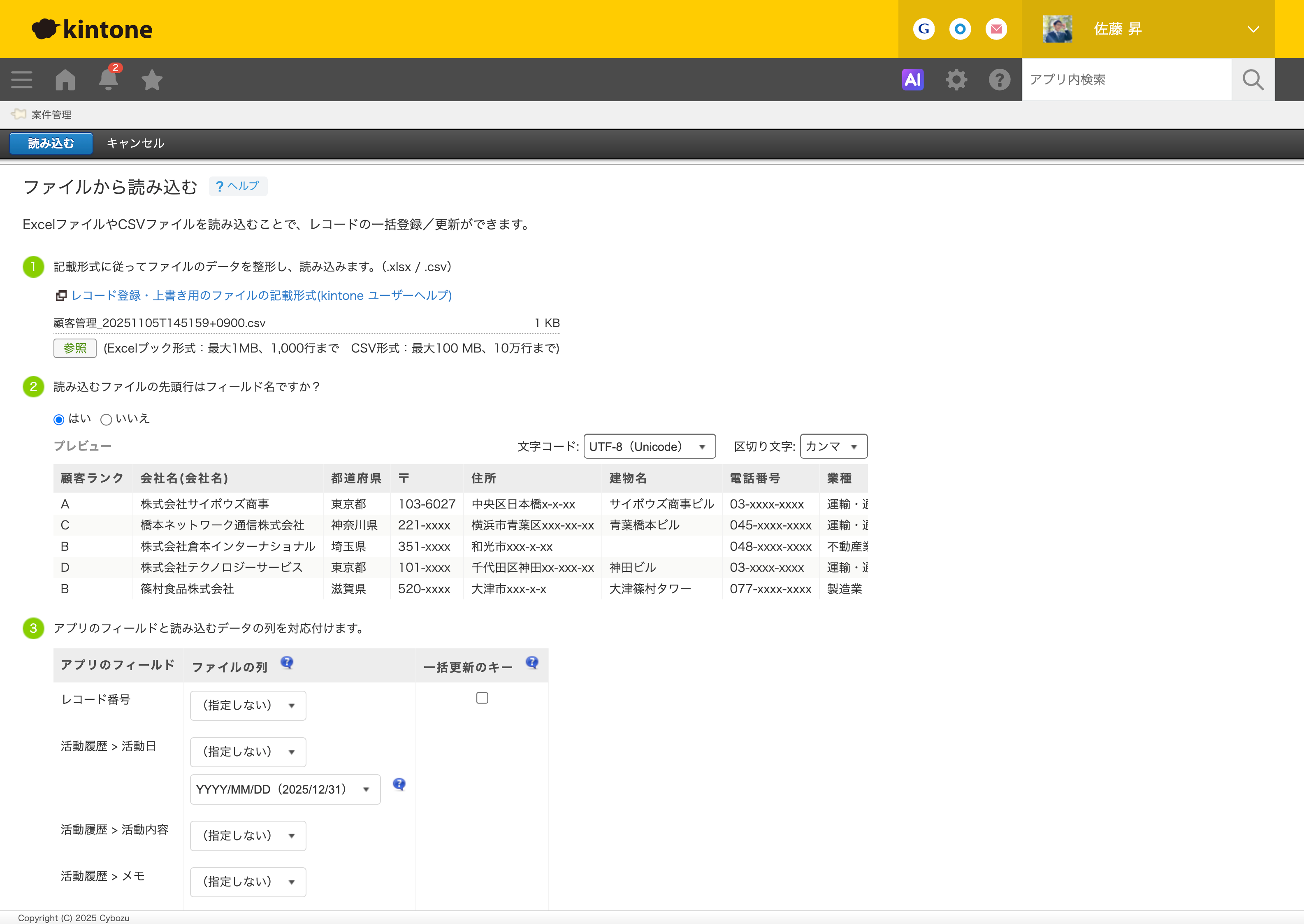 ファイルから読み込み画面において、ファイル読み込み時の設定内容を保存して、次回以降の読み込み時に再利用できるようになりました。保存された設定と列の並び順や項目名が同じ構成のファイルが選択された場合に、設定内容が反映された状態から設定作業を進められます。これにより、定期的なファイル読み込みのたびに発生していた、初めからの設定作業の手間が軽減され、より効率的にファイルを読み込めるようになります。